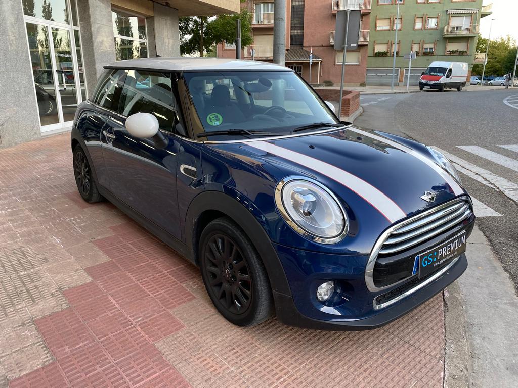 Mini Cooper 3p, manual de 6 marchas, Navegador, equipo de sonido hifi, asientos mixtos de cuero y tela, color azul metalizado, con techo blanco, control de velocidad, bluetooth, llantas en color negro, líneas en el capó de color blanco, Full LED, Luces automáticas, Sensor de Lluvia, Luces LED diurnas, antinieblas delanteros de LED, Muy mimado, siempre en garaje, se entrega totalmente revisado, garantía de 1 año, Precio al contado, posibilidad de financiación.