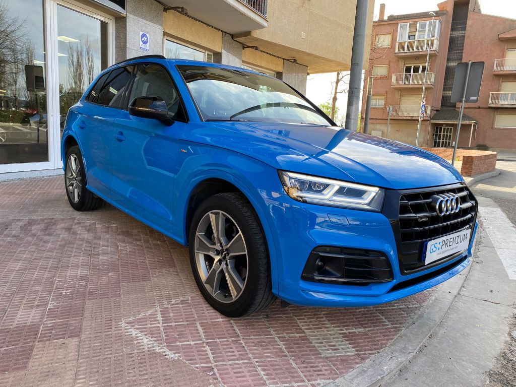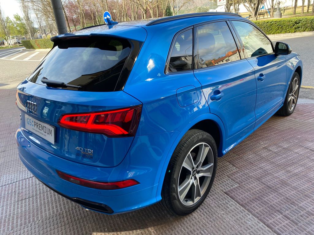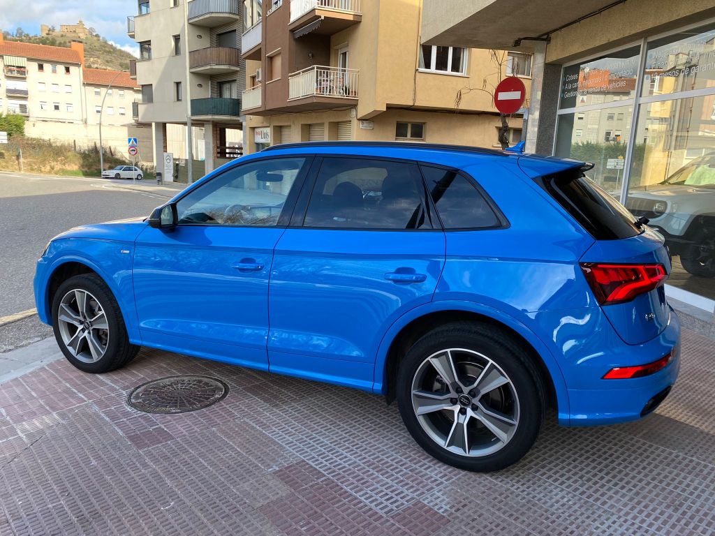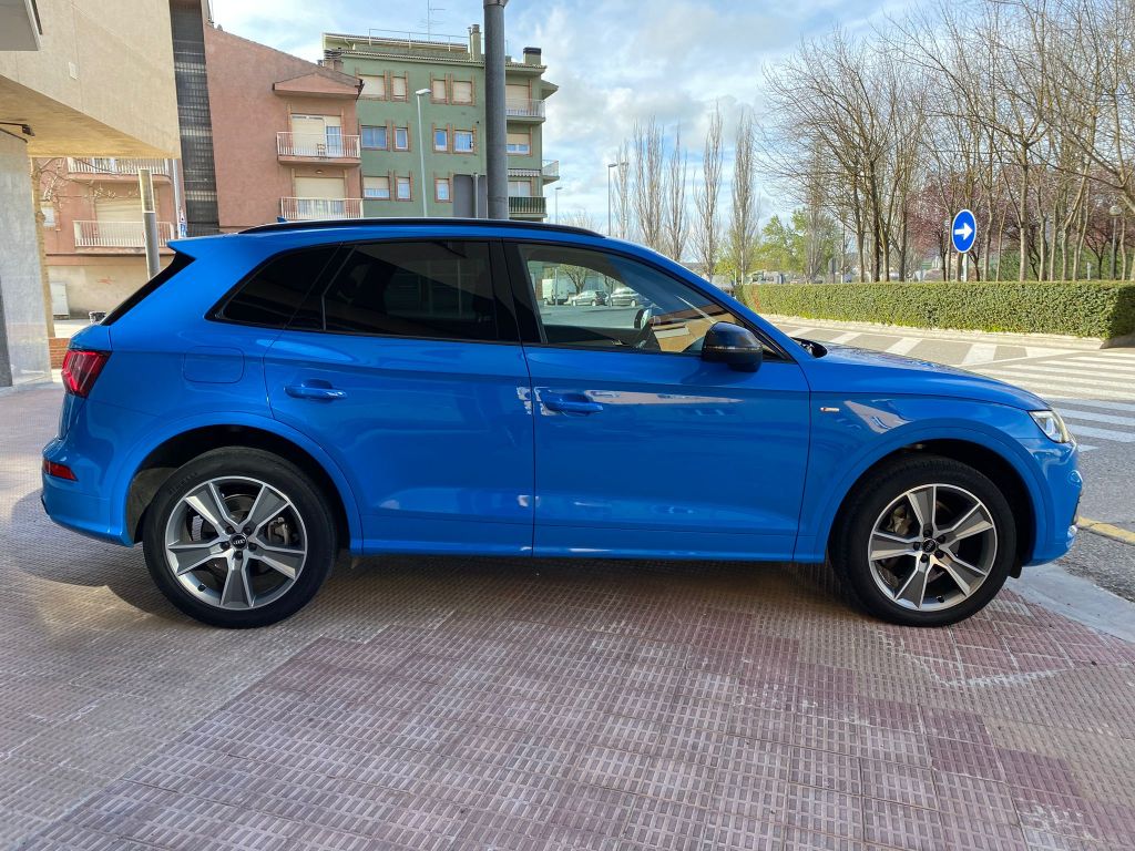 Audi Q5 Black Line 40 TDI Quattro S Tronic, Full LED, S-Line interior y exterior, Black Line, llanta de 20″, control de velocidad adaptativo, Cuadro digital, volante deportivo con levas en el volante, Climatización Bizona, Equipo de sonido Hifi Bang & Olufsen 3D, asientos deportivos S-line de cuero y tela calefactables, Techo panorámico practicable, pantalla táctil, asientente de carril, sistema anticolisión, control de descenso, modos de conducción, cristales traseros oscurecidos, lavafaros, sensores de parking y cámara marcha atrás, Garantia oficial de 12 meses, posibilidad de financiación.
