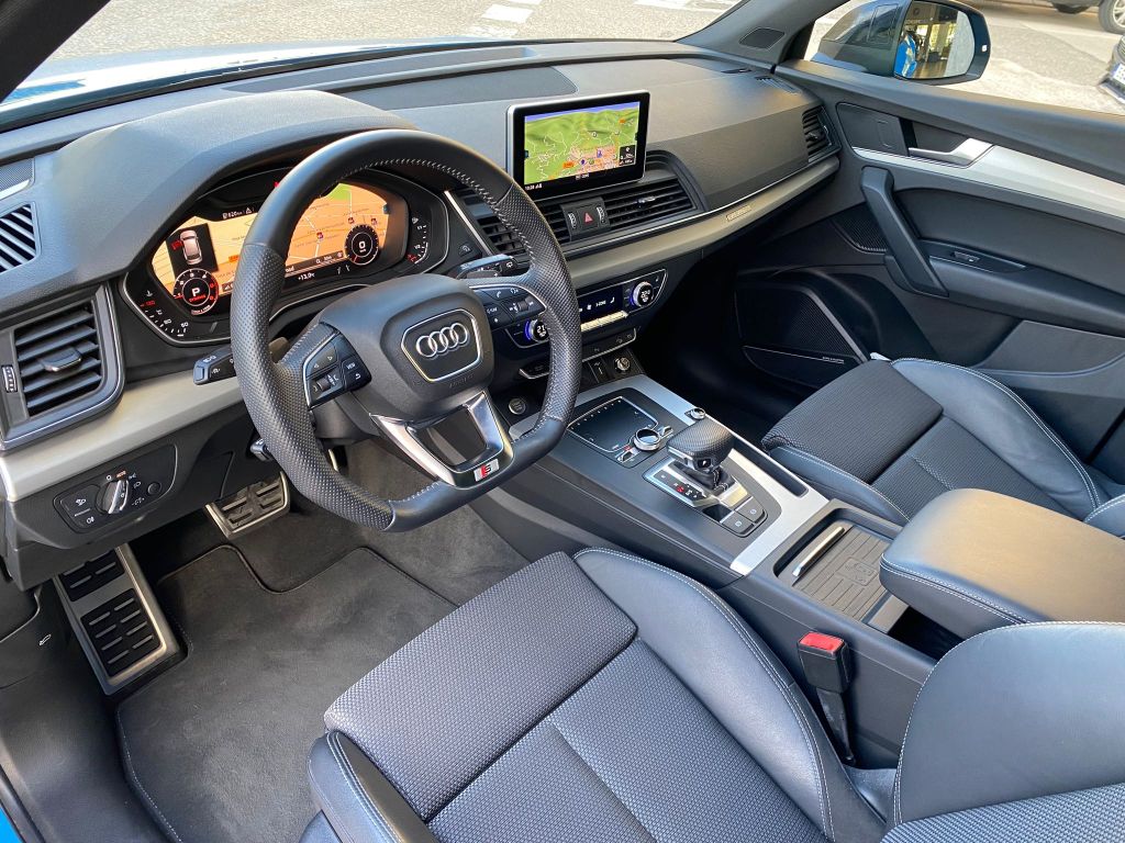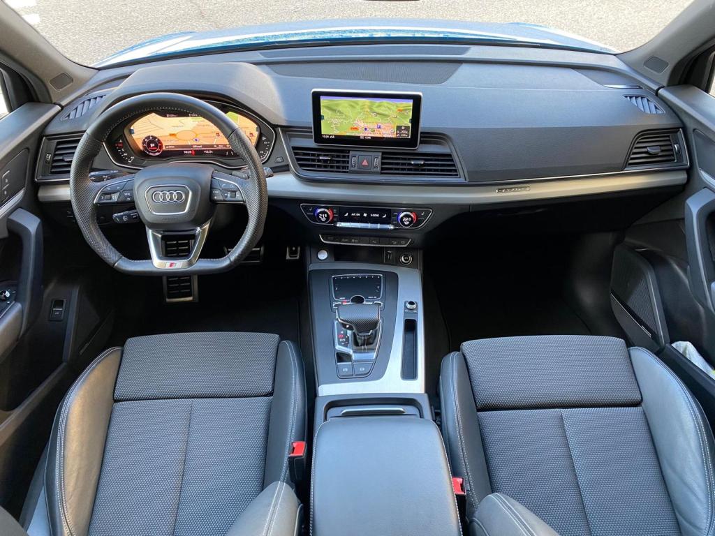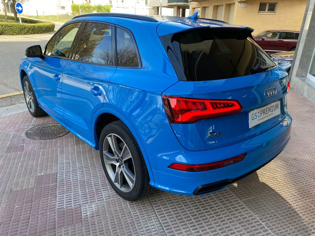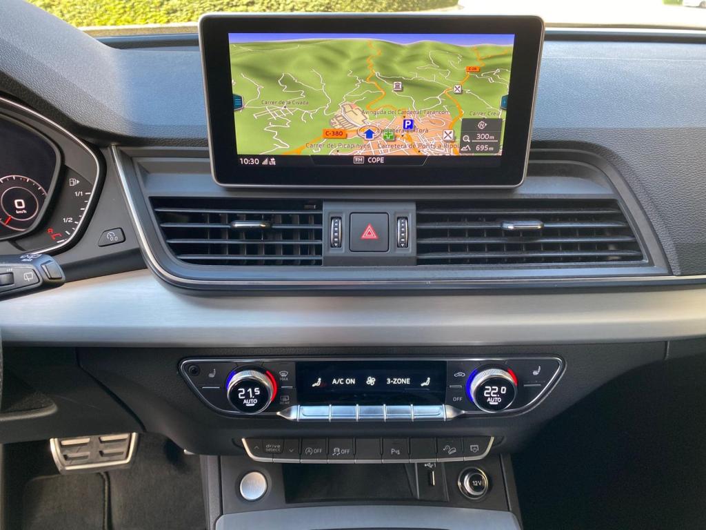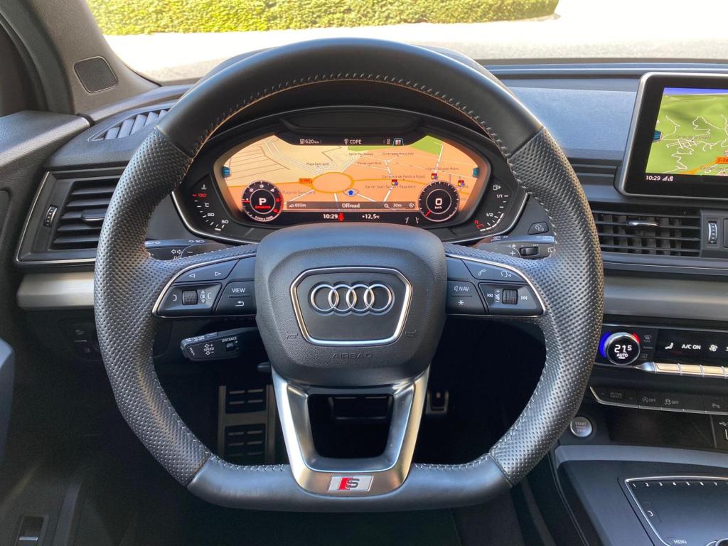 Audi Q5 Black Line 40 TDI Quattro S Tronic, Full LED, S-Line interior y exterior, Black Line, llanta de 20″, control de velocidad adaptativo, Cuadro digital, volante deportivo con levas en el volante, Climatización Bizona, Equipo de sonido Hifi Bang & Olufsen 3D, asientos deportivos S-line de cuero y tela calefactables, Techo panorámico practicable, pantalla táctil, asientente de carril, sistema anticolisión, control de descenso, modos de conducción, cristales traseros oscurecidos, lavafaros, sensores de parking y cámara marcha atrás, Garantia oficial de 12 meses, posibilidad de financiación.